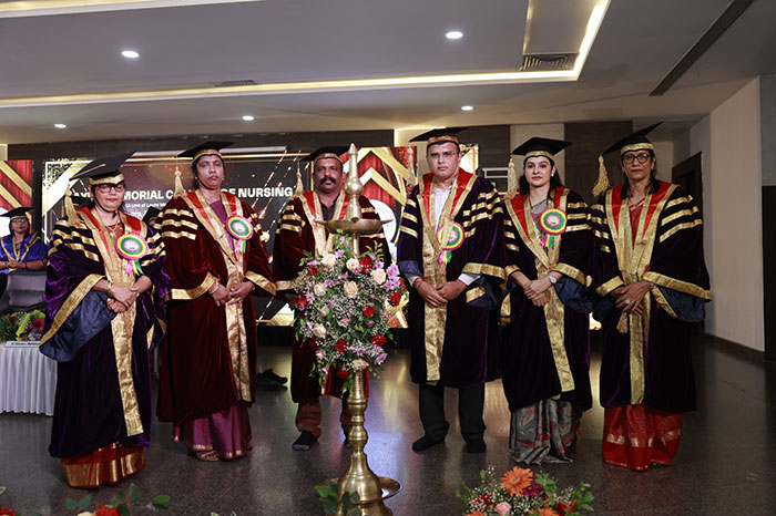 The Chief Guest, Dr. Melbin Michael Arakal, Senate Member of RGUHS, Bengaluru, released the college magazine, conferred degrees, and reminded graduates of the dignity of the nursing profession and their responsibility to society.